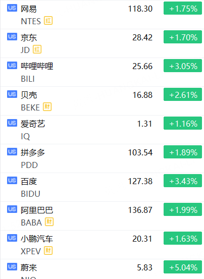 3月13日,热门中概股普涨,蔚来涨超5%,百度、哔哩哔哩涨超3%,拼多多、阿里巴巴涨近2%。
