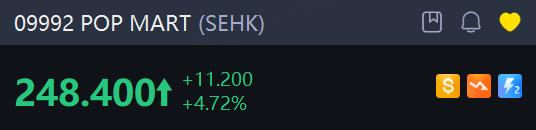 Pop Mart shares rose 4.7% in Hong Kong, heading for a fourth straight day of gains. The stock has added more than 10% this week and is up over 30% year to date.