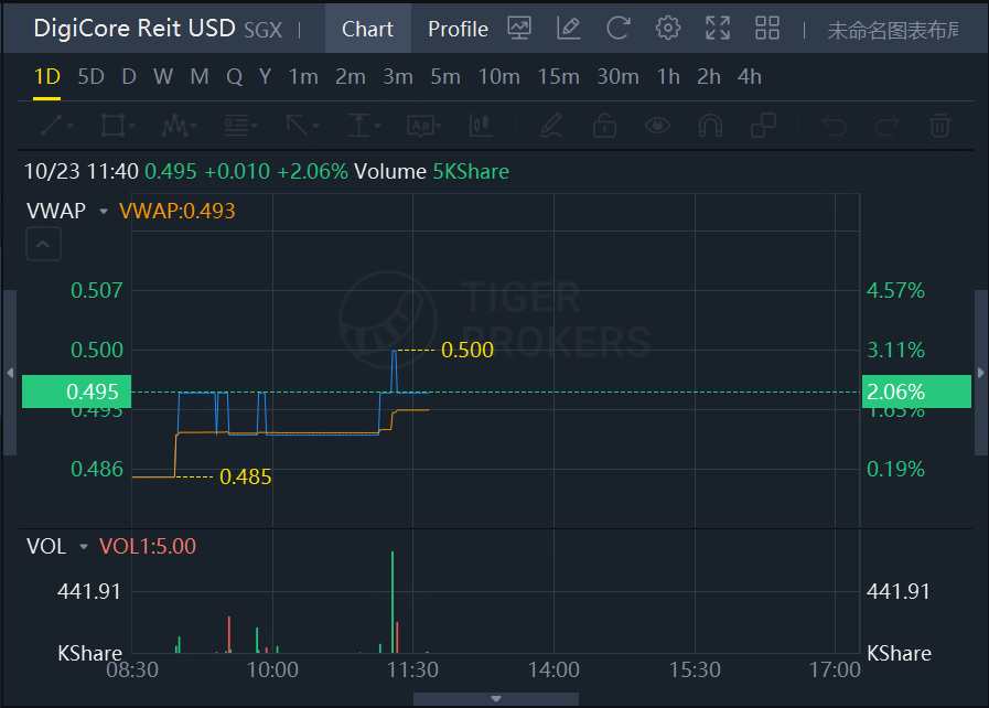 DigiCore Reit USD jumps 2.06% at 11:40 am, Oct 23.