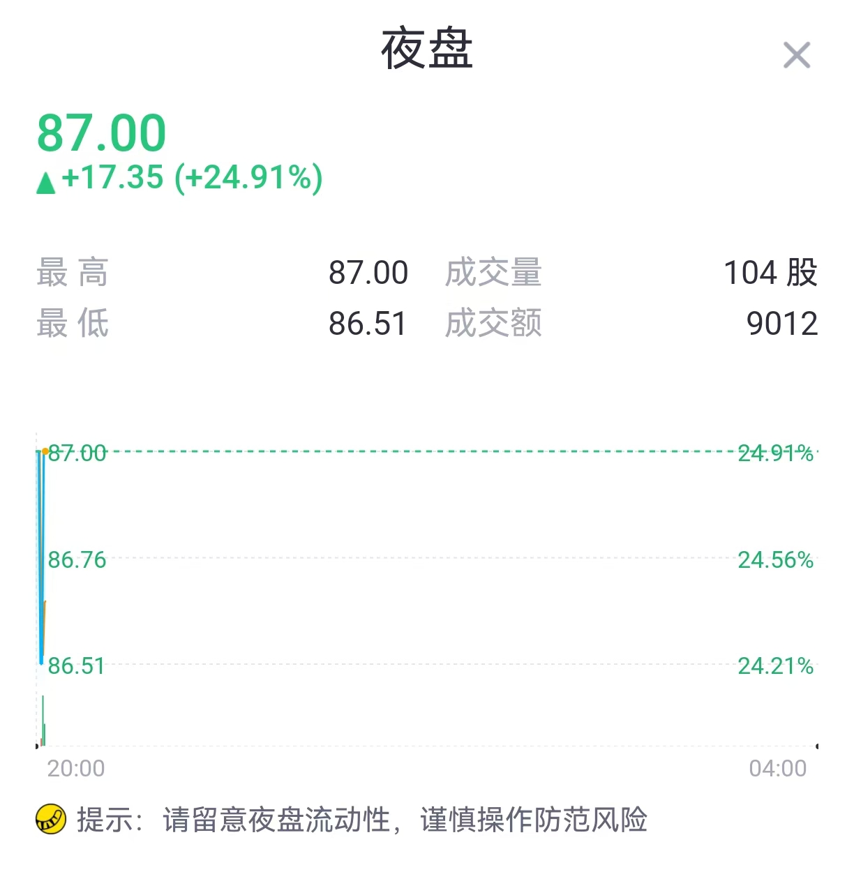 本周二(11月5日)美股夜盘时段,Astera Labs涨近25%,截至发稿报87美元: