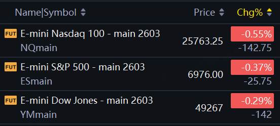 US Stock Futures Slide on Geopolitical Risks. Nasdaq 100 Futures Fall 0.55%; S&P Futures Drop 0.37%; Dow Futures Sink 0.29%