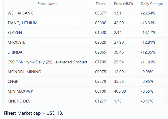 IV. Top 10 Losers in Hong Kong Market Today