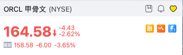 甲骨文盘前下跌3.65%,此前该公司宣布计划今年筹集高达500亿美元的债务和股权。