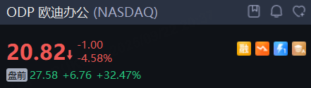 欧迪办公 暴涨超32%,消息称公司将被 Atlas Holdings 以 8.42 亿美元私有化。
