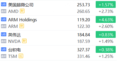 部分半导体股盘前走强,AMD、Arm Holdings涨超2%,英伟达、台积电涨超1%。
