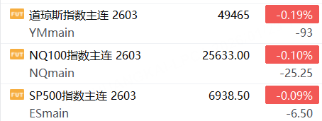1月23日,美股三大股指期货下跌,截止发稿,道指期货跌0.19%,纳指期货跌0.10%,标普500指数期货跌0.09%。