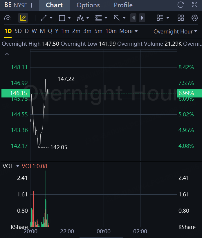 Bloom Energy's stock surged 7% in overnight trading, following the release of its fourth-quarter financial results that significantly exceeded analyst expectations.The fuel cell systems provider reported quarterly adjusted earnings per share of $0.45, beating the consensus estimate of $0.31 by 45%. Revenue for the quarter reached $777.7 million, surpassing the $652.1 million estimate and representing a 35.9% year-over-year increase. Full-year 2025 revenue grew 37.3% to a record $2.02 billion.