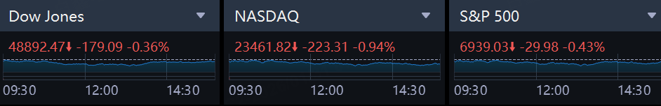 As of Jan 31, the U.S. major indexes closed as follows: Dow Jones down 0.36% at 48,892.47; S&P 500 down 0.43% at 6,939.03; Nasdaq Composite down 0.94% at 23,461.82. Moves reflected pressure across growth and commodities-linked proxies, with notable pockets of strength in select AI storage and individual large caps into the close.