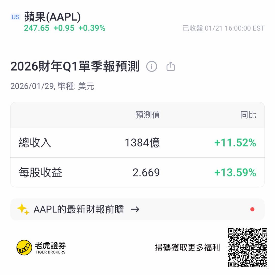 多家机构在围绕苹果即将发布的财报给出积极展望,市场预期本季度收入中位数约1383.5亿美元、同比增约11.3%,若突破1400亿美元或创历史新高,焦点集中在中国市场的iPhone表现与服务业务持续增长。