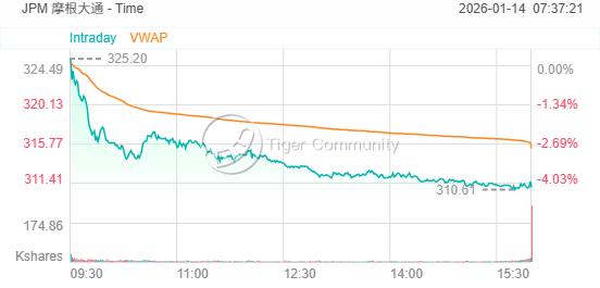 摩根大通周二公布的第四季度业绩令其股价大幅下挫,表现逊于大盘整体走势。