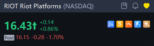 Riot Platforms stock edged down 1.7% in after-hours trading.