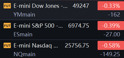 As of Jan 14, U.S. stock index futures are softer, led by tech-heavy contracts. The Nasdaq 100 futures fell 0.58% to 25,756.75, the S&P 500 futures fell 0.39% to 6,974.75, and the Dow futures fell 0.33% to 49,247.00. Moves reflect a modest risk-off tone amid chip-stock consolidation and outsized strength in precious-metals proxies in pre-market trade.