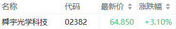 科指成分股中,舜宇光学科技涨3.1%,快手-W跌2.35%,阿里巴巴-W跌1.9%,金蝶国际跌1.64%,中芯国际跌1.62%。