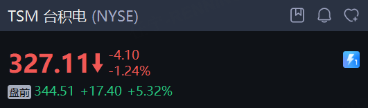 台积电 Q4业绩超预期,盘前涨超5%,阿斯麦涨近5%,应用材料涨超6%,开盘均将创下历史新高。拉姆研究涨超5%,英伟达涨近1%,AMD、博通涨超1%。