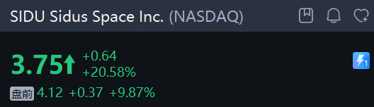 太空概念股 Sidus Space Inc. 盘前续涨近10%,隔夜收涨超20%。