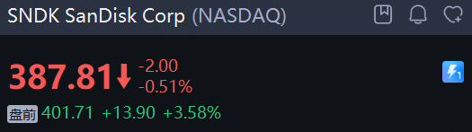 存储概念盘前普涨, SanDisk Corp 涨超3%,伯恩斯坦将其目标价从300调整到580美元。美光科技涨超3%,西部数据、希捷科技涨超2%。