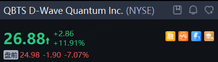 同时, D-Wave Quantum Inc. 盘前跌超7%, Rigetti Computing跌5.8%,Arqit Quantum Inc. 跌超4%, IONQ Inc. 跌2.6%。