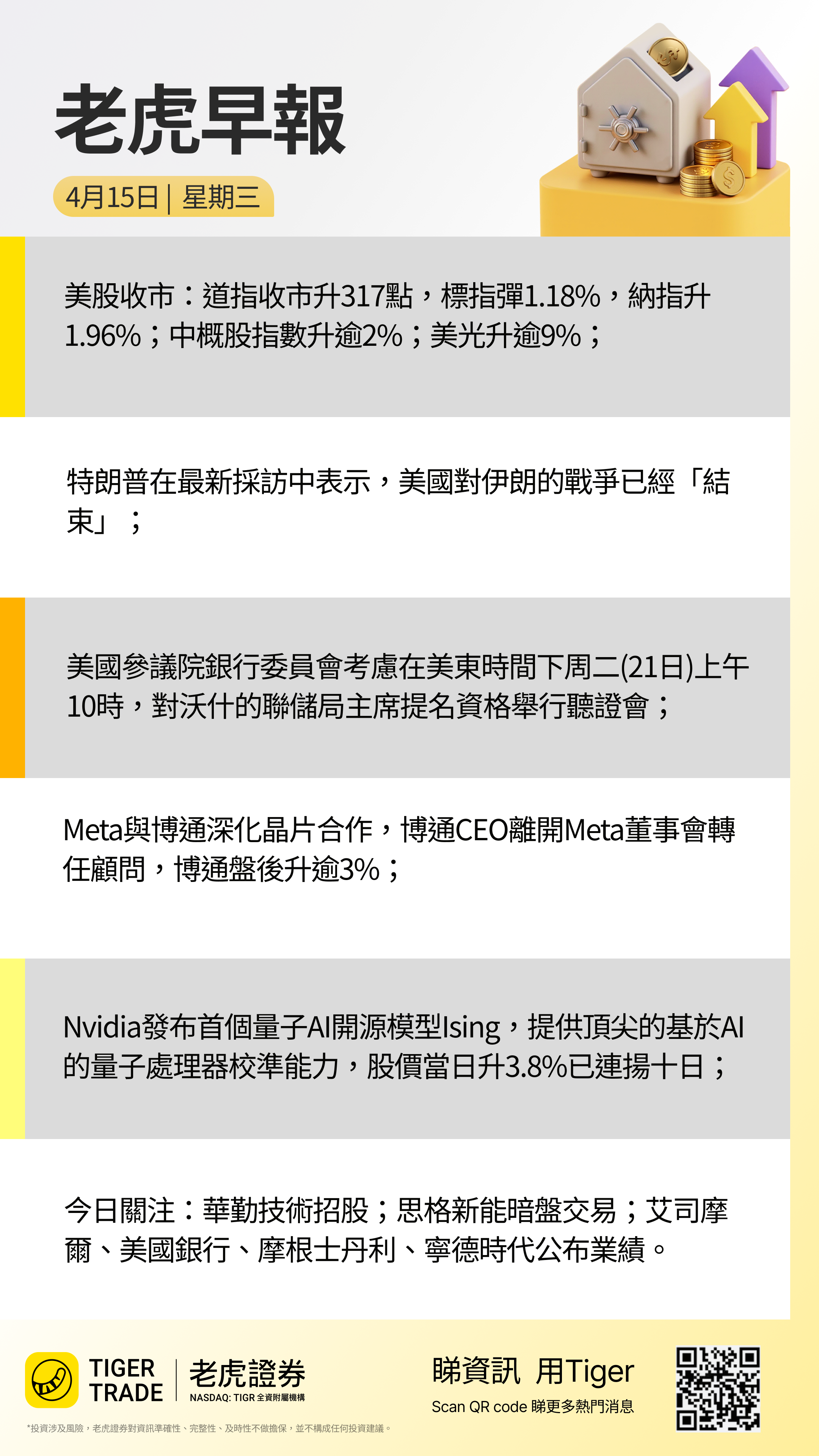 业绩:阿斯麦、PNC金融、美国银行、摩根士丹利(盘前)公布业绩;港股 宁德时代 发布财报。