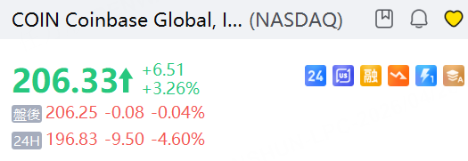 加密货币股夜盘普跌, RobinhoodCoinbase Global, Inc. 跌4%, Strategy 跌5%, BitMine Immersion Technologies Inc. 跌5%;