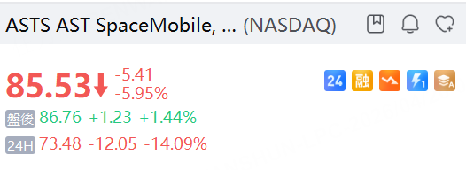 太空概念股走低, AST SpaceMobile, Inc. 跌超14%, Rocket Lab USA, Inc. 跌超3%;