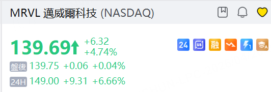 谷歌据报正与迈威尔洽谈开发新型AI芯片, 迈威尔科技 夜盘大涨超6%,谷歌则跌逾1%。