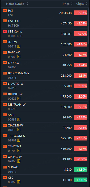 JD.com fell 4.2%; Alibaba, Nio fell 4%; Li Auto fell 2.7%; Meituan fell 2.3%; Tencent fell 1.9%.