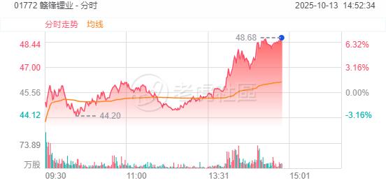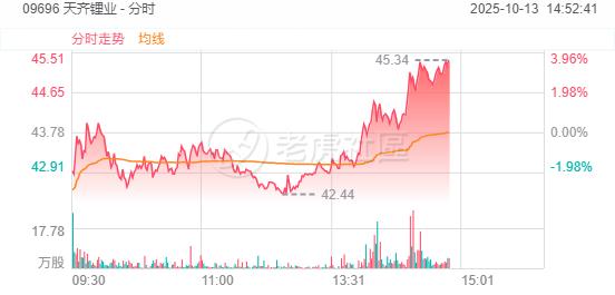 10月13日,港股“锂矿双雄”午后拉升!赣锋锂业涨超6%、天齐锂业涨超3%。