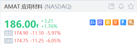 应用材料夜盘跌超6%,Q1营收指引不及预期,引发芯片需求担忧。