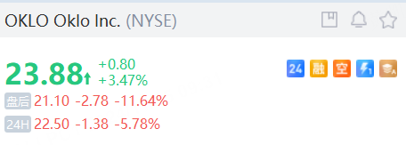 Oklo Inc夜盘跌超5%,公司Q3净亏损996万美元。