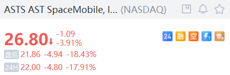 AST SpaceMobile夜盘跌近18%。由于卫星发射增加,公司第三季度亏损扩大。