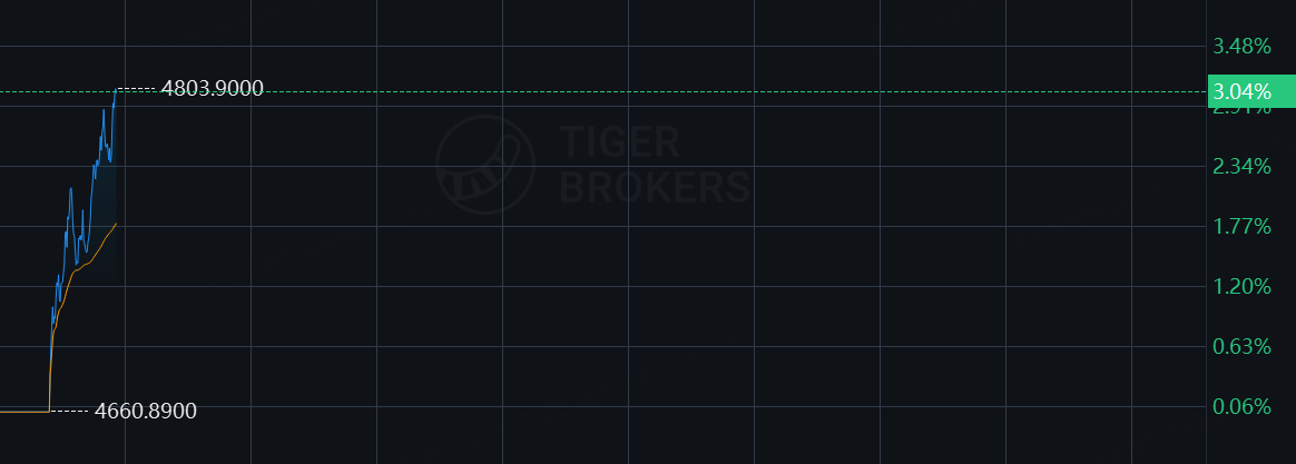 现货黄金站上4800美元/盎司,日内涨130美元;现货白银现涨5.11%,报83.3美元/盎司。