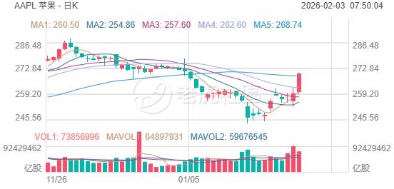 大型科技股涨跌不一。苹果大涨超4%,英伟达、特斯拉跌超2%。