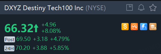 Destiny Tech100 Inc rallied 5.8% in overnight after soaring 8% on Wednesday.