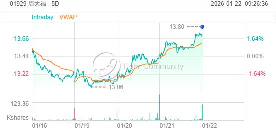 周大福公布截至去年12月底止第三財季零售值按年增長17.8%。周福購 周福摩通六三购B.C /購 周福摩通六六购A.C