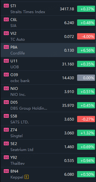 Singapore stocks opened higher on Friday. STI rose 0.4%, SIA rose 0.5%, Singtel rose 1.3%, Cordlife rose 6.6%, TC Auto fell 4%.