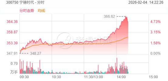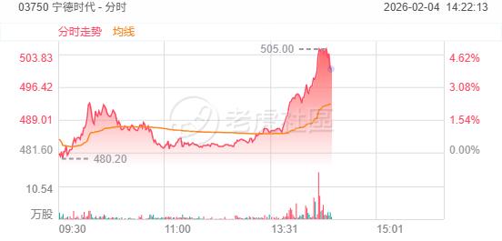 周三,宁德时代 A、H股午后同步拉升,A股涨超5%,H股涨4.8%。