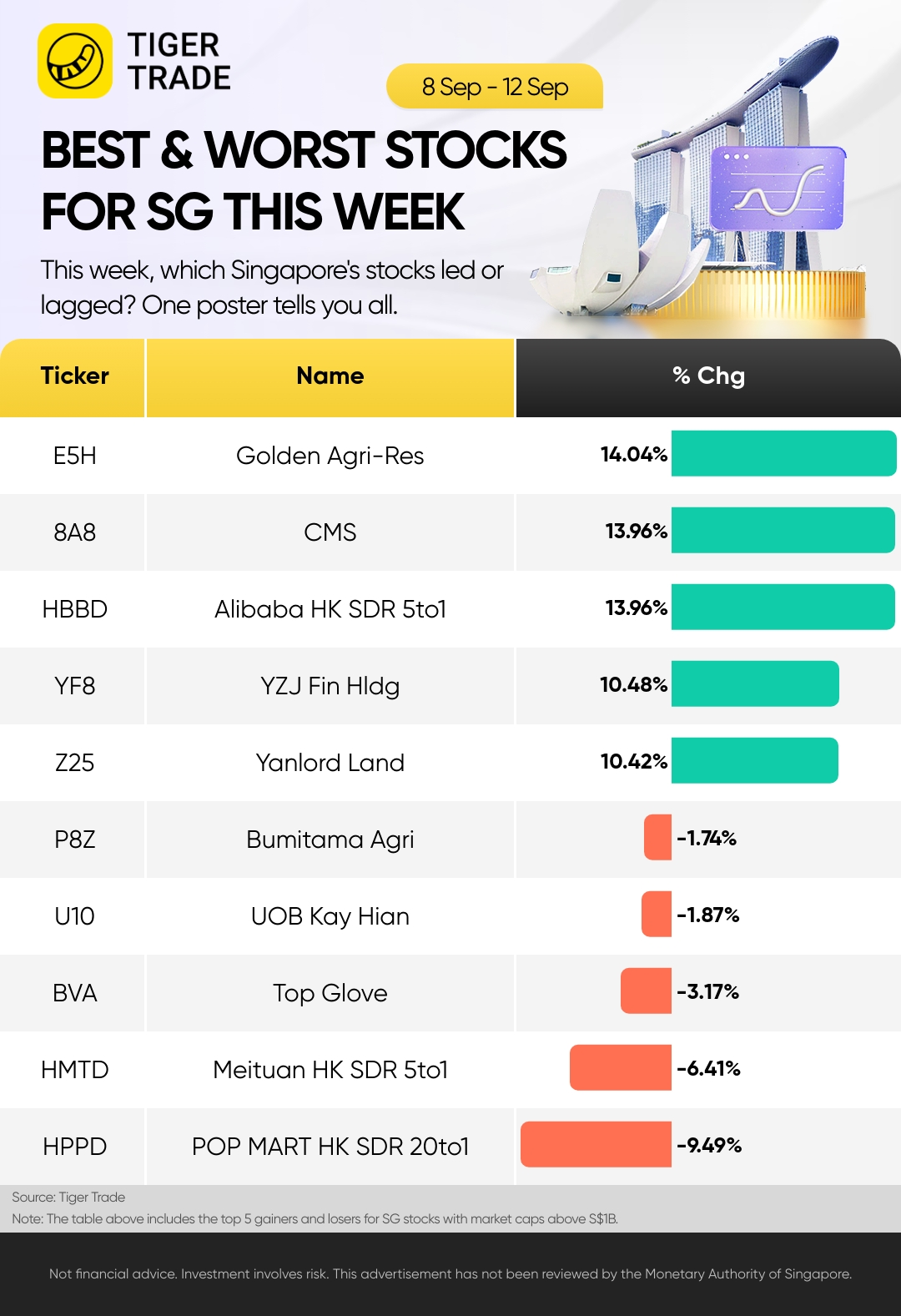 In terms of individual stocks, Golden Agri-Res, CMS, Alibaba HK SDR 5to1 rose around 14%; YZJ Fin Hldg, Yanlord Land rose over 10%; Top Glove down over 3%; UOB Kay Hian, Bumitama Agri down about 2%.