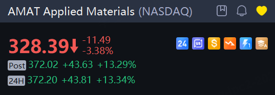 Applied Materials forecast second-quarter revenue and profit above market estimates, betting on a boom in demand for AI processors and a worldwide memory shortage to help drive sales of its chipmaking equipment. The company's shares rose 13.3% in overnight trading.