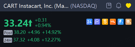 Instacart forecast current-quarter gross transaction value and core profit above expectations and beat fourth-quarter estimates, helped by strong demand for essentials on its online delivery platform and rising advertising revenue. Shares of Instacart were up 12.3% in overnight trading.