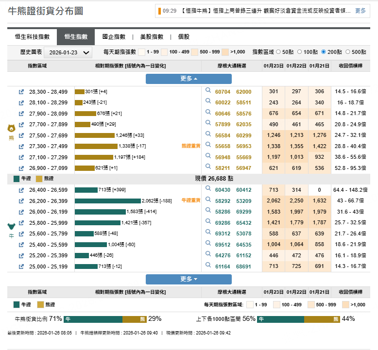 牛熊快報 | 港股三大指數低開,上周好淡倉資金流或反映後市升勢未必持續;老鋪黃金股價連升,留意其認購證