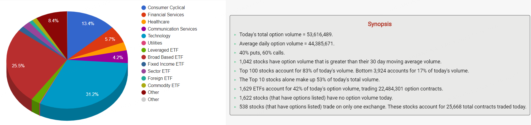 期权市场总成交量达53,616,489张合约,其中,看涨期权占比60%。