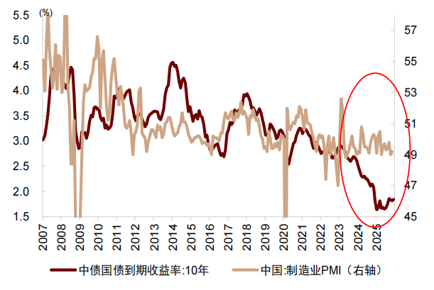 图表14:过去两年债券利率下行速度相对经济基本面过快,导致债券估值偏贵,可能积累调整风险