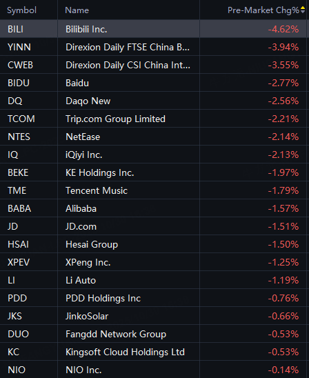 Chinese ETFs and ADRs fell in premarket trading on Thursday.