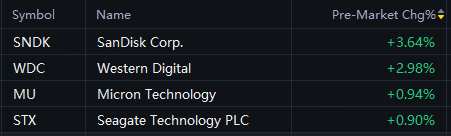 Premarket Movers | Storage Stocks Jump, SanDisk up 4%, Western Digital up 3%; Chinese ADRs Drop, Bilibili down 5%, Alibaba down 2%; Rare Earth Stocks Rise, Critical Metals up 9%, MP Materials up 3%