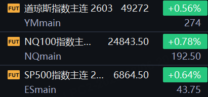 2月6日,美股三大期指走高,道琼斯指数期货上涨0.56%,标普500指数期货上涨0.64%,纳斯达克100指数期货上涨0.78%。科技与半导体权重回升带动期指走强,风险偏好边际改善。