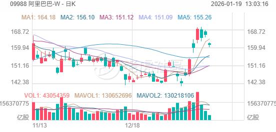阿里巴巴-W 上午跌超3%,很可能连续三天收阴线。