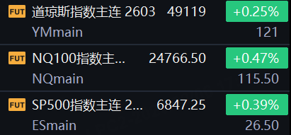 2月6日,美股三大股指期货均转涨,纳指期货现涨0.47%,标普500指数期货涨0.39%,道指期货涨0.25%;半导体板块集体走高,迈威尔科技涨超4%,英伟达、AMD、博通涨超2%。