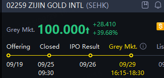 Zijin Gold stock surges 40% in Hong Kong grey market.