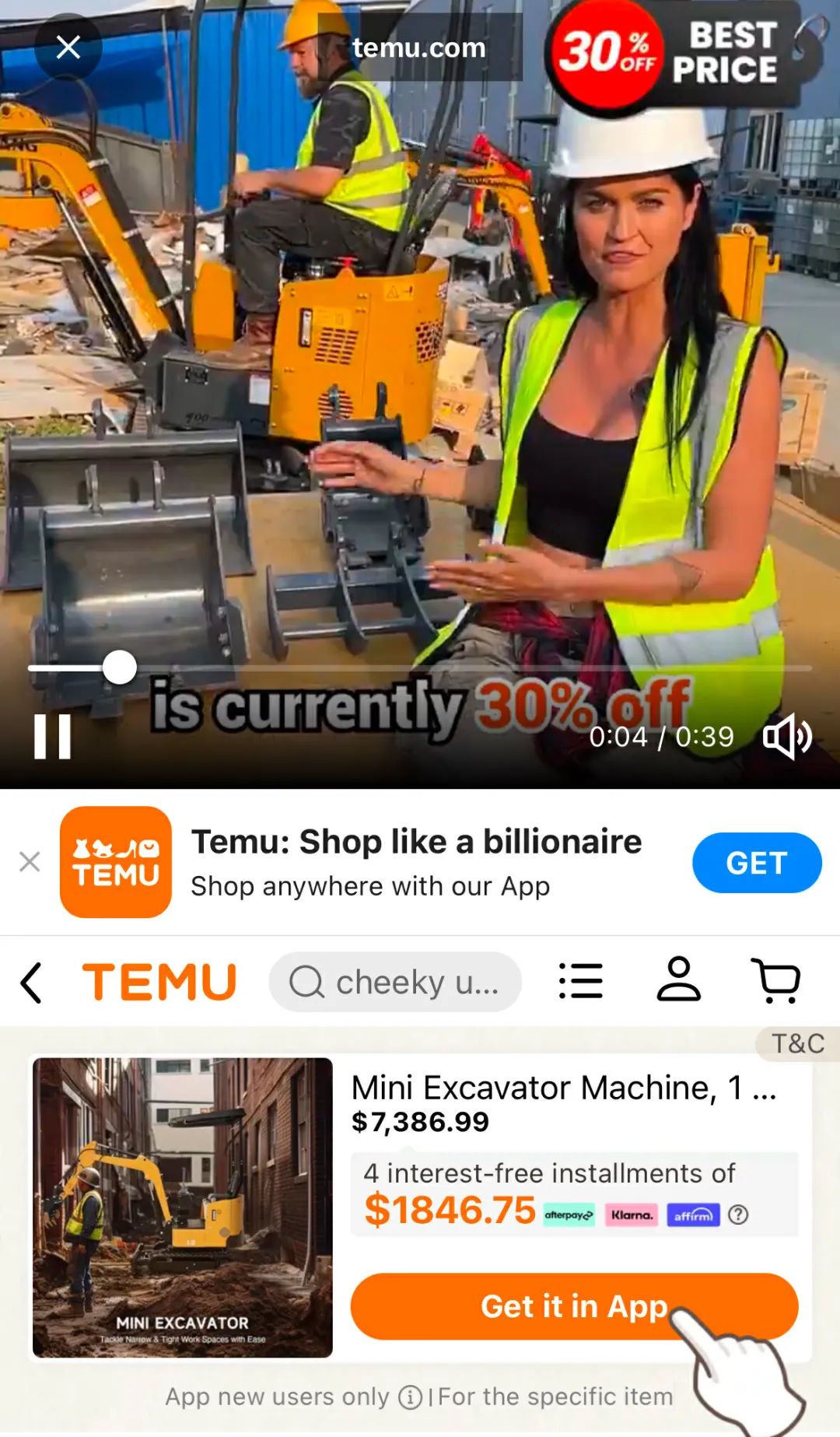 Temu 已经在卖售价 7000 多美元的微型挖掘机。