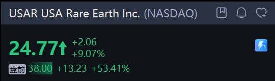 1月26日周一,稀土概念股USA Rare Earth Inc. 盘前暴涨超53%,报道称特朗普政府将持有该公司10%的股份。